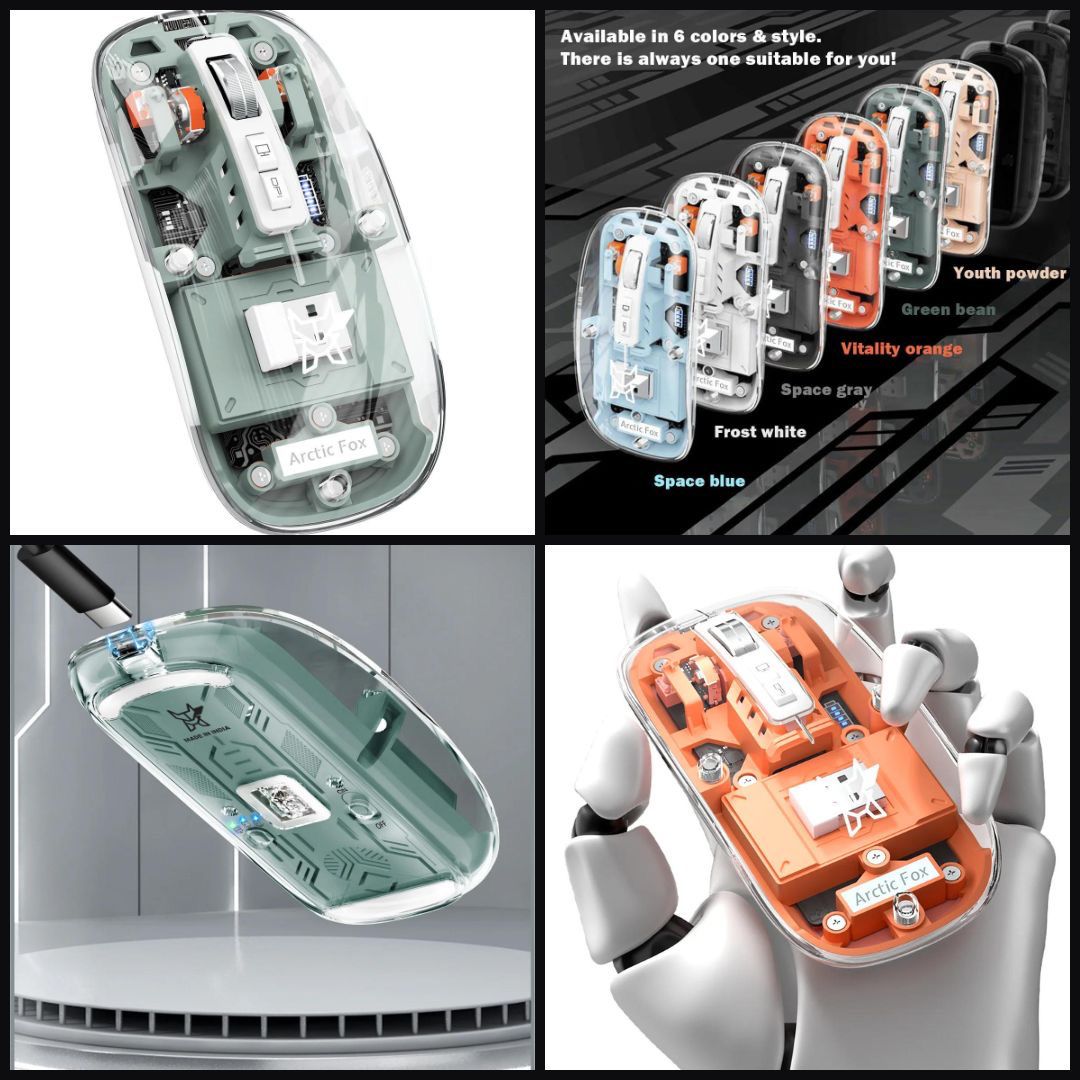 Oubliez les souris classiques et monotones. La souris sans fil Arctic Fox Transparente redéfinit le design de votre espace de travail. Avec sa coque supérieure aimantée qui laisse apparaître ses composants internes, elle attire tous les regards. Ultra-plate et légère, c’est le compagnon idéal de votre ordinateur portable pour travailler au bureau, à la maison ou en déplacement.